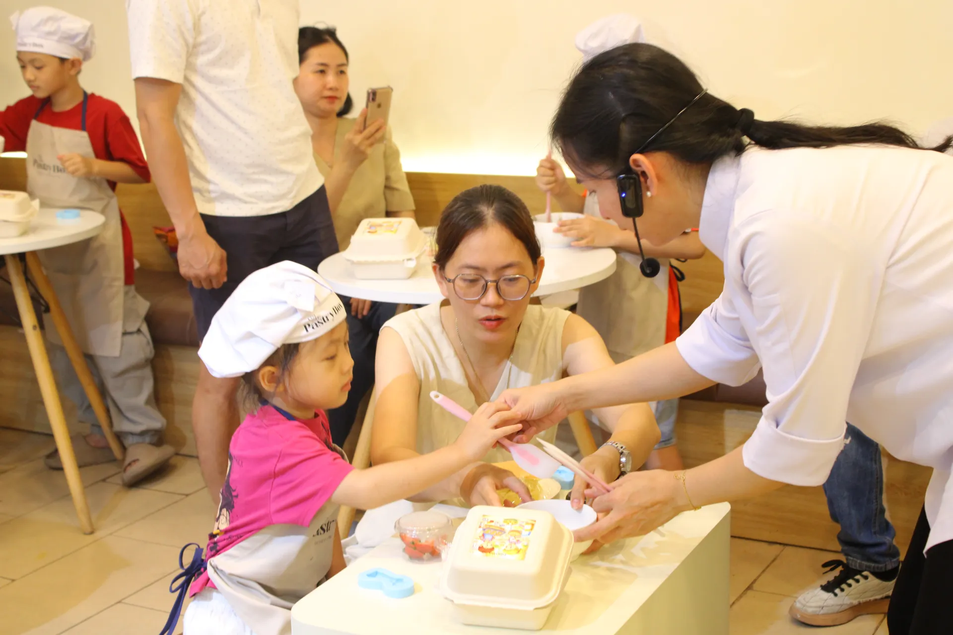 Các bạn nhỏ sẽ trực tiếp tham gia vào quá trình làm và trang trí bánh. Việc tự tay hoàn thiện sản phẩm của mình giúp bé cảm thấy hào hứng, tự tin và có thêm niềm vui khi học.
